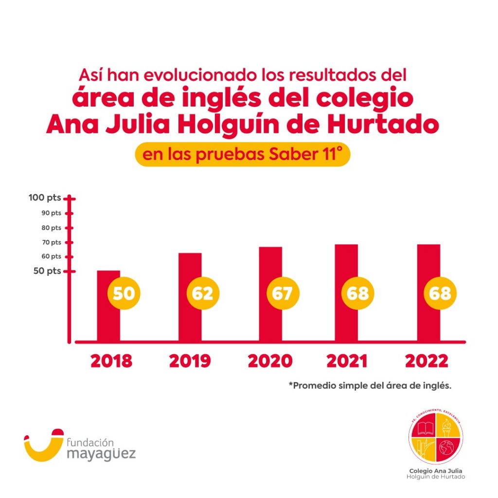 Desde el 2015 que el Colegio Ana Julia Holguín de Hurtado inició su programa de bilingüismo, los resultados en el área de inglés de las pruebas Saber 11° han venido evolucionando. En 2022, el 48% de los graduados obtuvo nivel B1 (intermedio) en inglés.