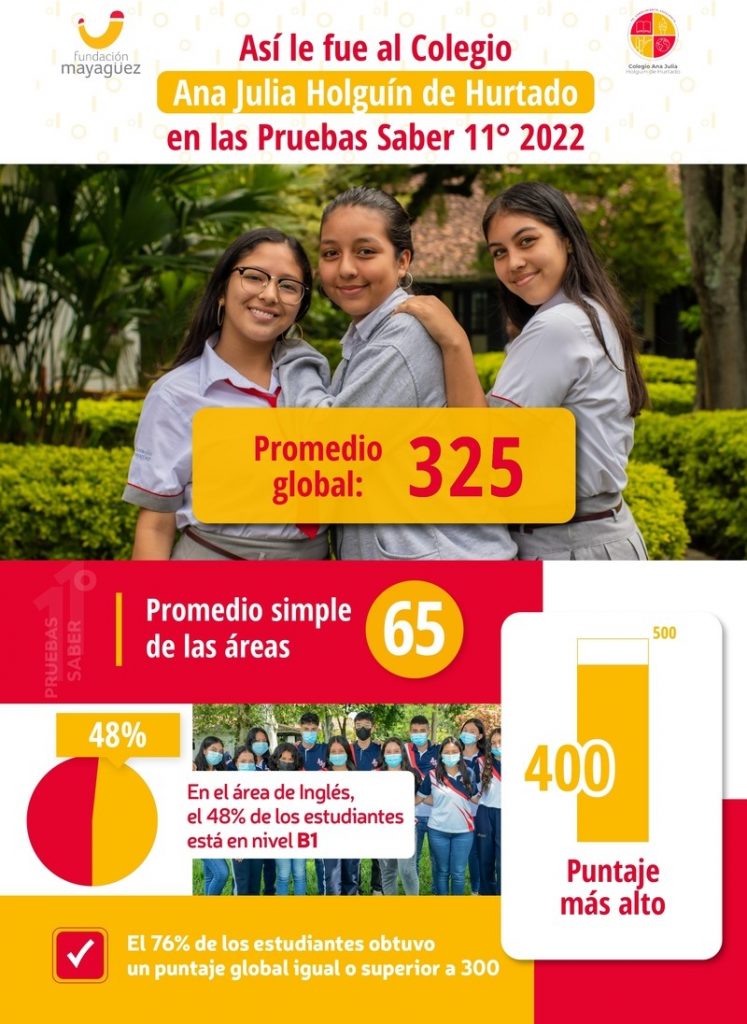 Te presentamos los principales resultados de los estudiantes del colegio Ana Julia Holguín de Hurtado en las pruebas Saber 11° 2022.
